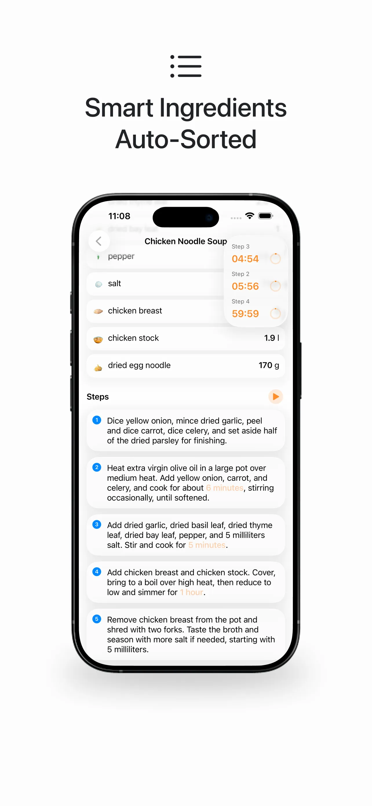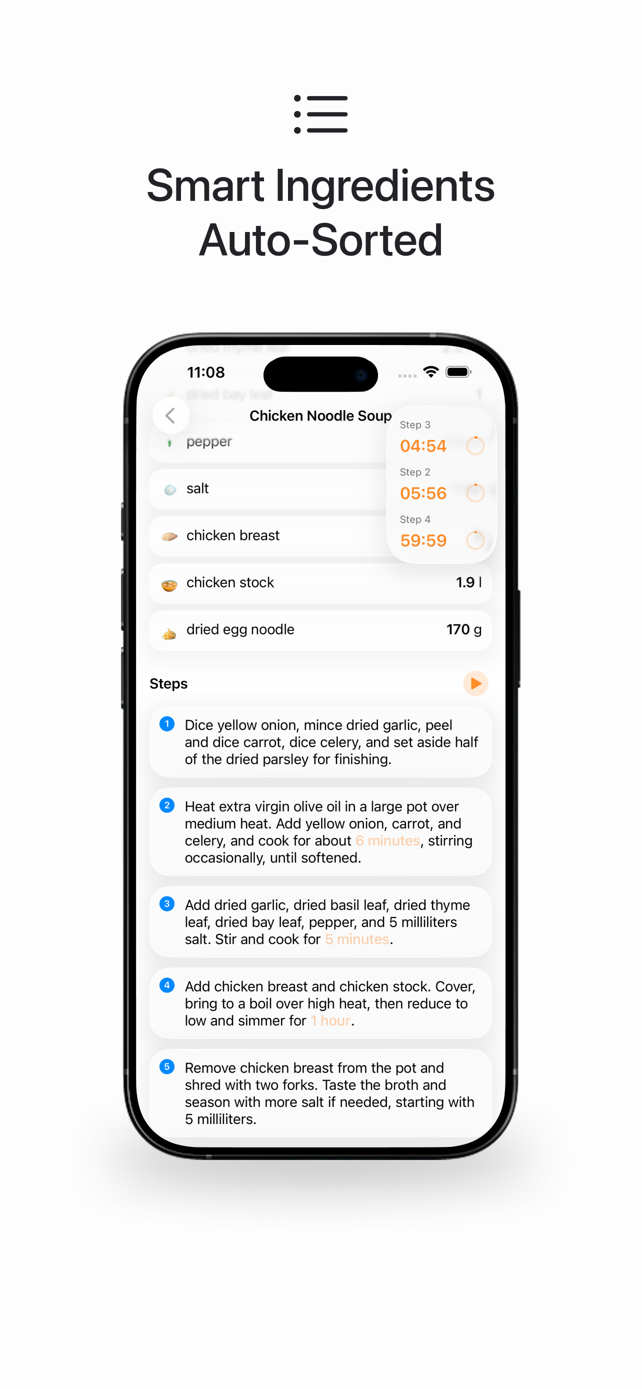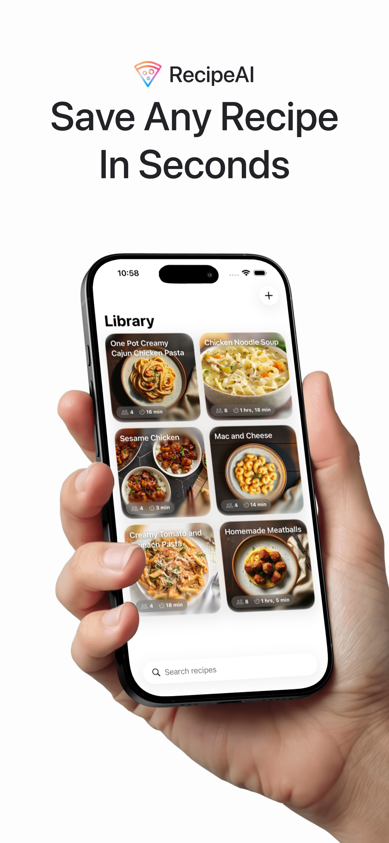 Built for home cooks who collect recipes from everywhere. RecipeAI organizes everything into a clean, beautiful library with cookbooks, ratings, personal notes, and built-in cooking timers. Available on iOS.
